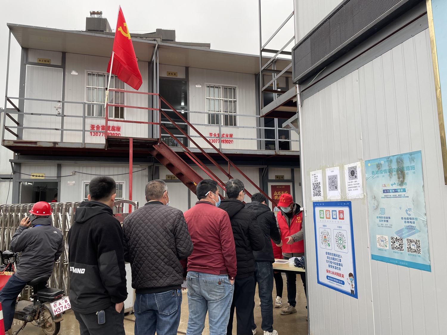 (繩金塔張家山社區(qū)) 一個支部就是一個堡壘。公司第一黨支部將工作前移到疫情防控一線,以黨建共建對象張家山社區(qū)為點,組織黨員和入黨積極分子深入社區(qū)防控一線,開展志愿者活動,對居民進(jìn)行防控知識的宣傳教育,在核酸檢測點,幫助疏導(dǎo)交通、維護(hù)秩序,指導(dǎo)居民檢測,動員廣大居民積極參與全員核酸檢測,以實際行動投入到防控一線。公司繩金塔民俗風(fēng)情街工程項目臨時黨支部堅持一手抓疫情防控,一手抓工程項目建設(shè)。成立了黨員先鋒崗,主動扛起防疫責(zé)任,在做好工地防控設(shè)施圍護(hù)的前提下,堅持每天做好進(jìn)場人員的體溫檢測,教育工地人員注意個人防護(hù),定時對工地進(jìn)行殺菌消毒。從而,保證了工程項目在疫情期間不停工、不停產(chǎn) ,體現(xiàn)了黨旗在防控一線高高飄揚。